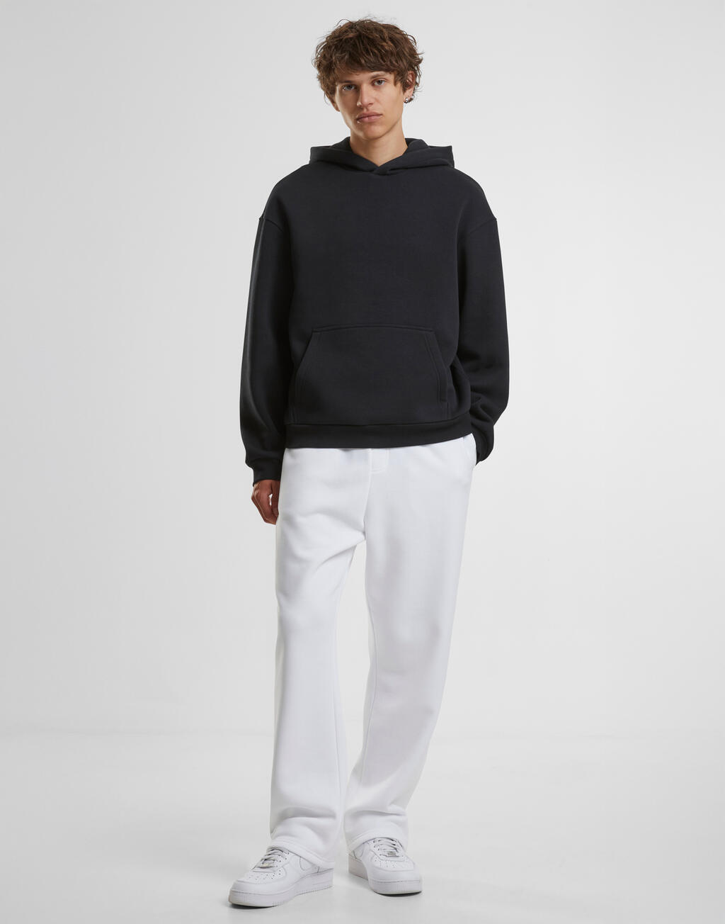 ·330 g/m² ·70% katoen, 30% polyester ·Oversized pasvorm ·Met capuchon ·Verlaagde schoudernaden ·Kangoeroezak ·Geribbelde manchetten en zoom
