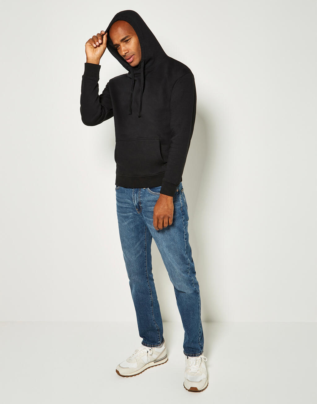 ·Gelijkgekleurde jersey gevoerde capuchon met platte kanten trekkoord