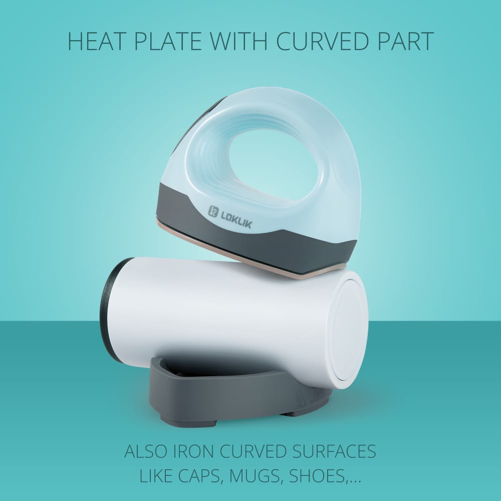 Strijken op gebogen oppervlakken: De warmteplaat heeft een gebogen deel, ontworpen om de warmte gelijkmatig te verdelen over ronde oppervlakken zoals mokken, bekers en hoeden. Dit zorgt voor vlekkeloze overdrachten op gebogen artikelen, waardoor u eenvoudig unieke projecten kunt aanpassen die lastig zijn voor volledig vlakke hittepersen.