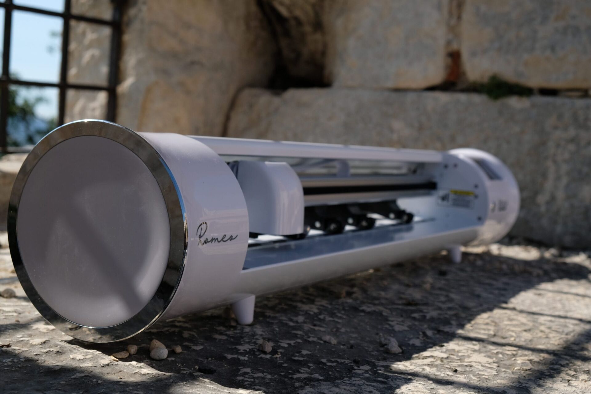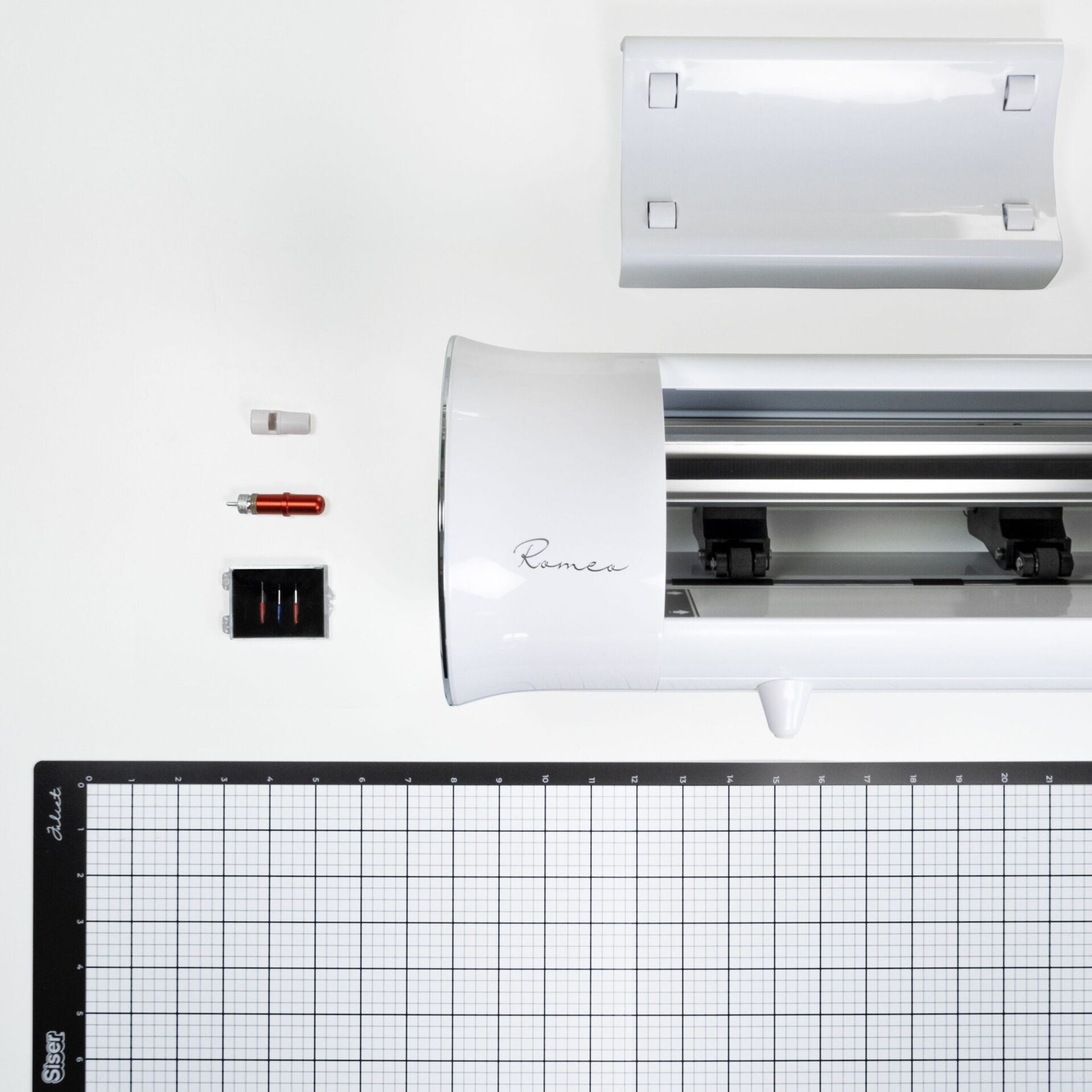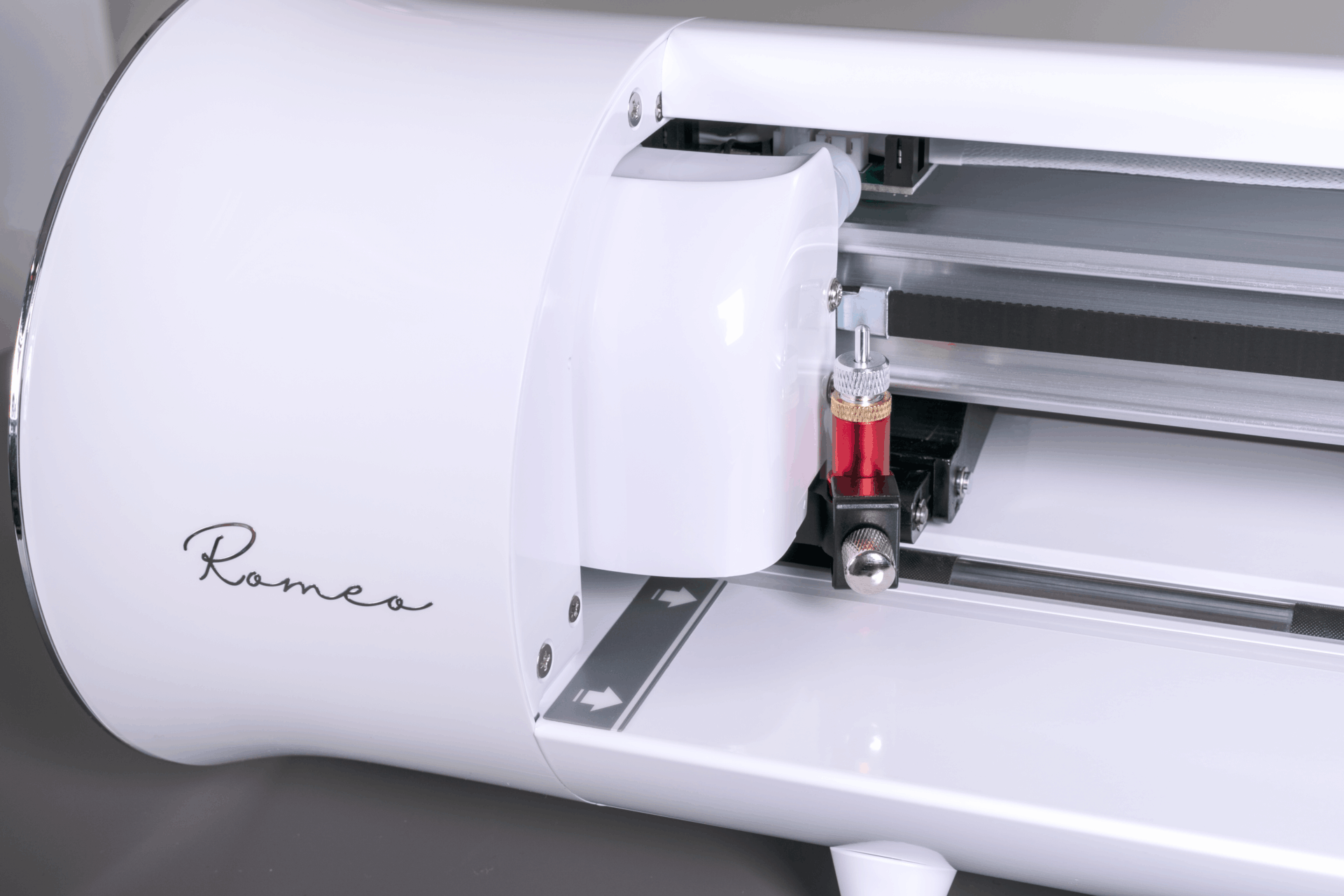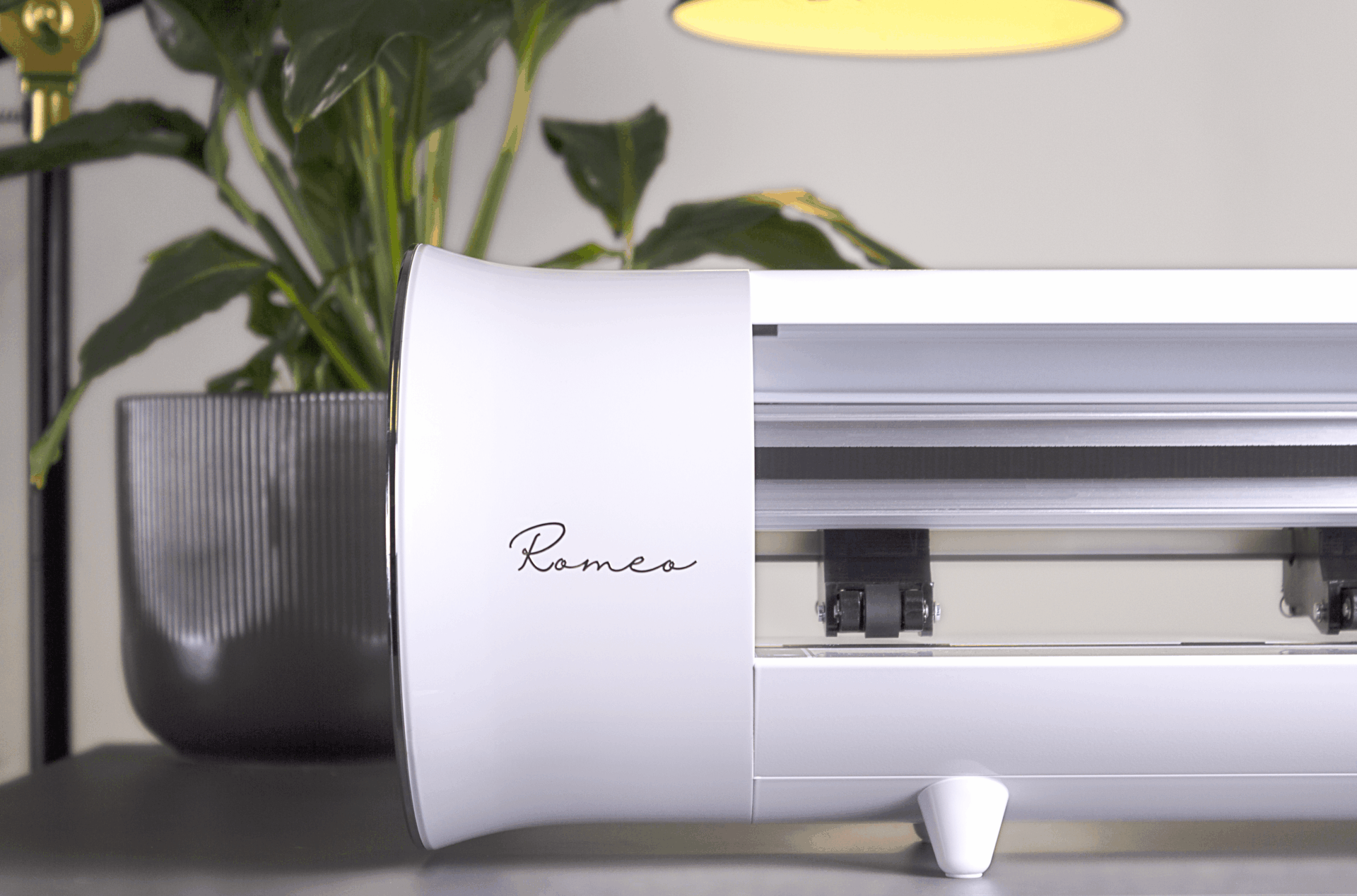 contrast met de “printer”-look. Met zijn unieke capsulevormfactor en glanzend afwerking, zal de Romeo™-snijplotter een aanvulling zijn op uw werkruimte – niet een